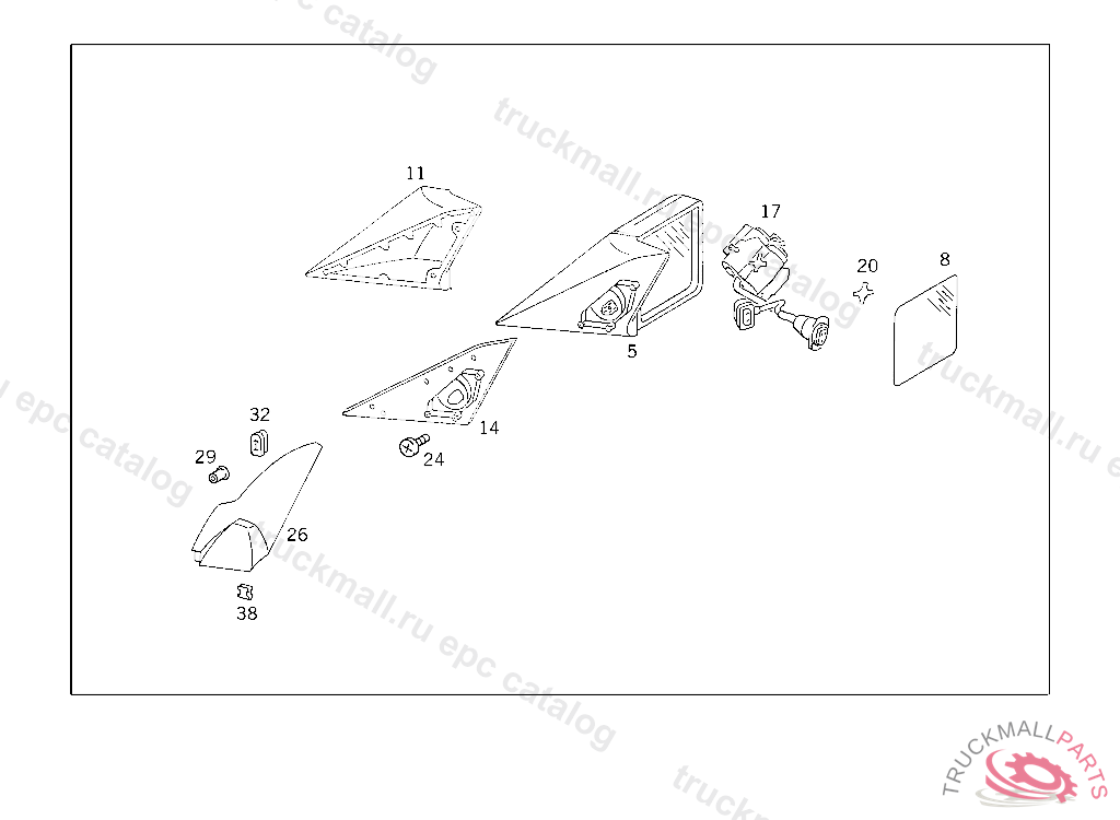 OUTSIDE REARVIEW MIRROR LESS SHELL, MIRROR GLASS CONVEX & HEATED,ELECTRICALLY ADJUSTABLE,RIGHT