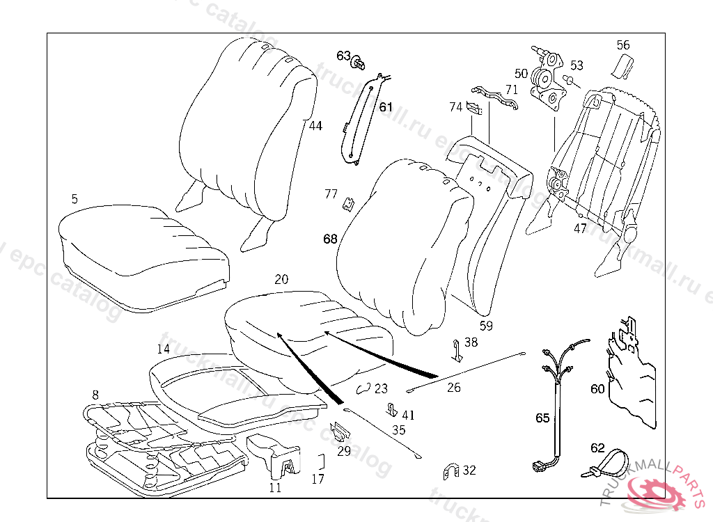 BACKREST RIGHT SEAT, NO.9045I NO.5070I NO.8310I NO.8320I NO.8411I NO.6093 AI NO.3111I NO.7095 CI I NO.6121 B I NO.7188 DI