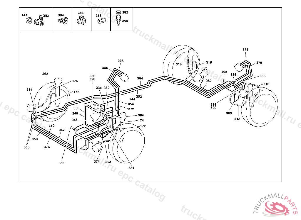 LINE FROM DISTRIBUTOR TO RIGHT FRONT SPRING LOAD ACCUMULATOR