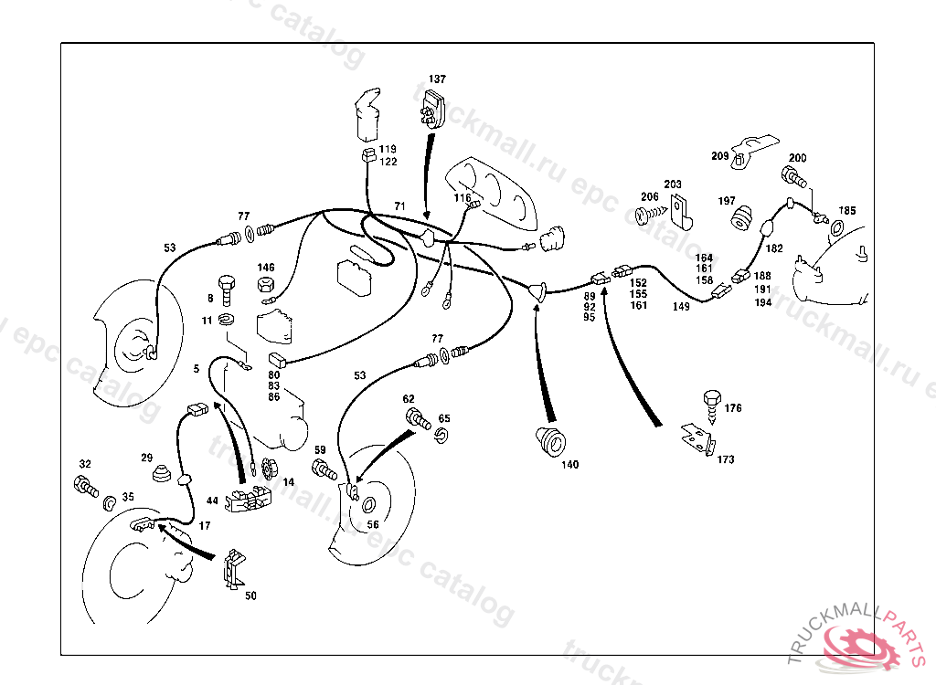 CABLE HARNESS BRAKE LINING WEAR INDICATOR,RIGHT, 086 006454 093 007617 183 013160 190 019851 283 001367 000 193138 003 095174 007 078124 102,103 201155 105 206919 200 001639