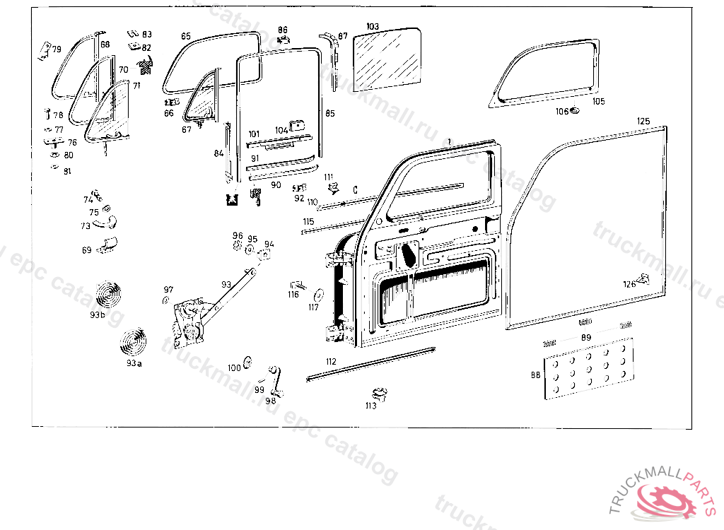 WINDOW LIFTER, LEFT MAKE "KEIPER" MAKE "KEIPER" OPTIONAL WITH MAKE "BROSE" FROM CHASSIS 8503299 UP TO CHASSIS 8503298 SPECIAL REQUEST