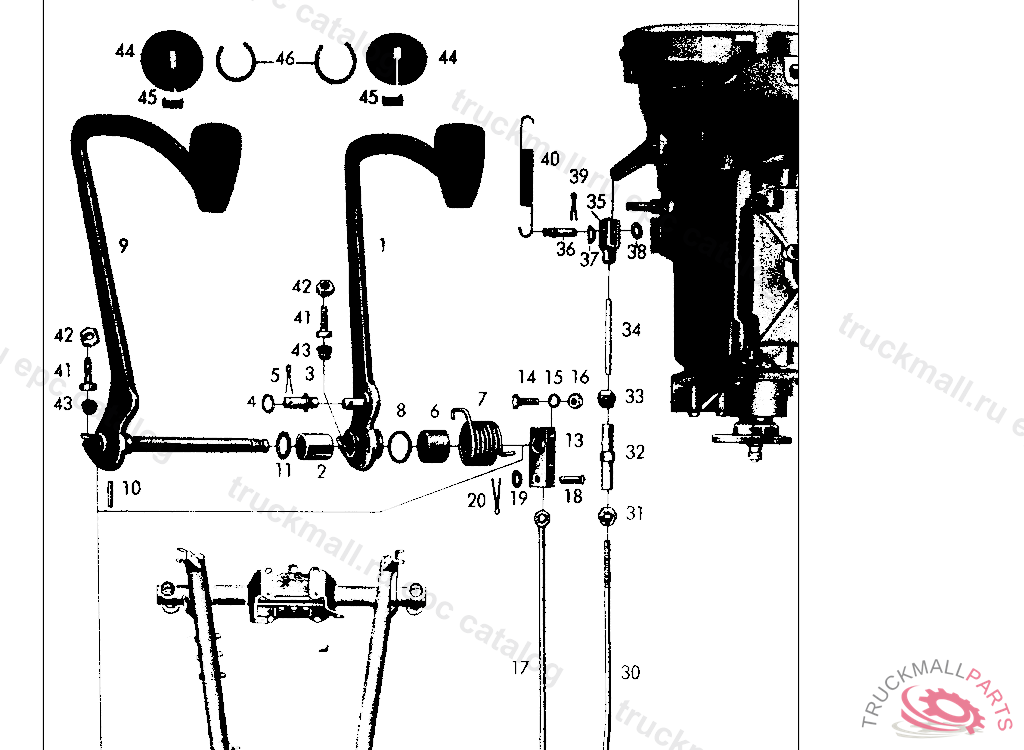 BUNDBOLZEN RECHTSLENKUNG FUR ZUGSTANGE AN HEBEL FUR KUPPLUNGSBETATIGUNG