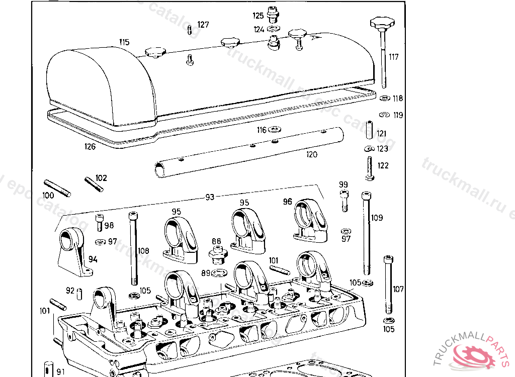 CYLINDER HEAD WITH CAMSHAFT BEARING, STUD BOLTS AND VALVE GUIDES, CAMSHAFT AND VALVES