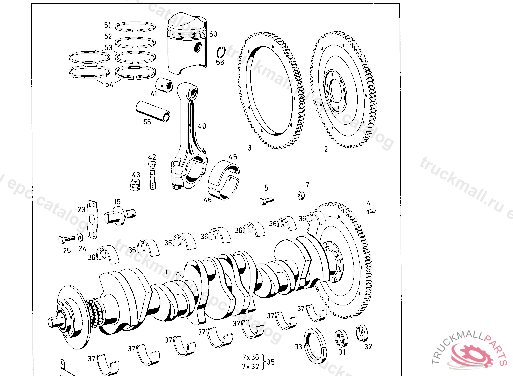 KURBELWELLE MIT SCHWUNGRAD, BUNDSCHRAUBE, KURBELWELLEN- UND PLEUELLAGERSCHALEN OHNE SCHWUNGSCHEIBE