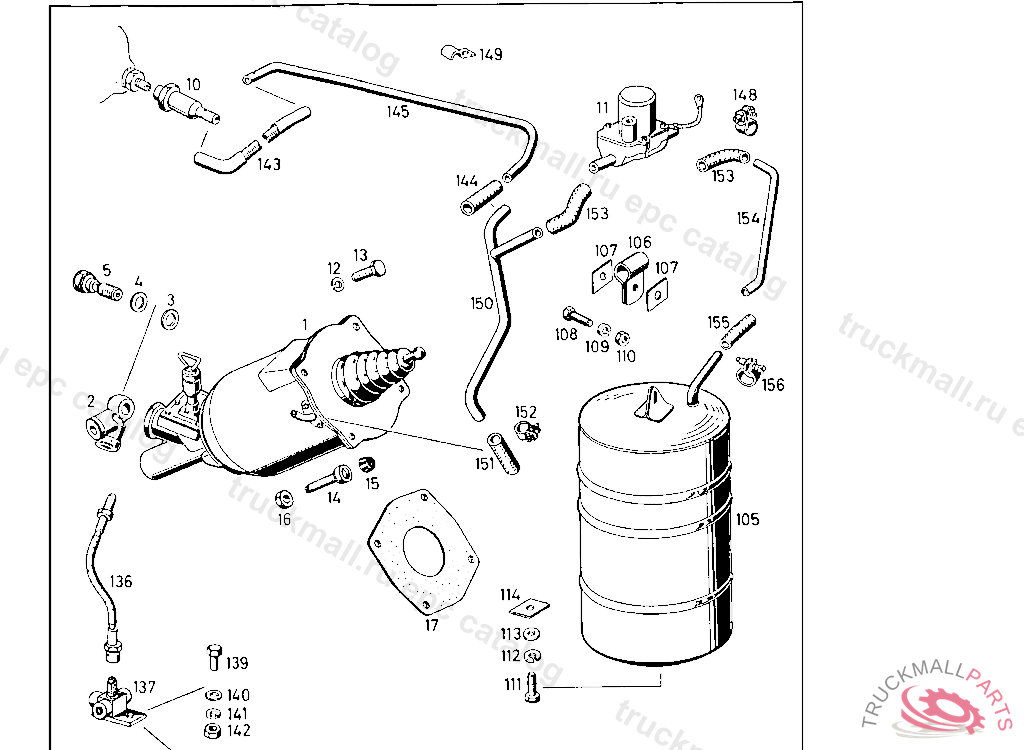 UNTERDRUCKBEHALTER FUR TREADLE-VAC BIS FAHRGESTELL-NR. 55 00353 MIT AUSNAHME VON 55 00251