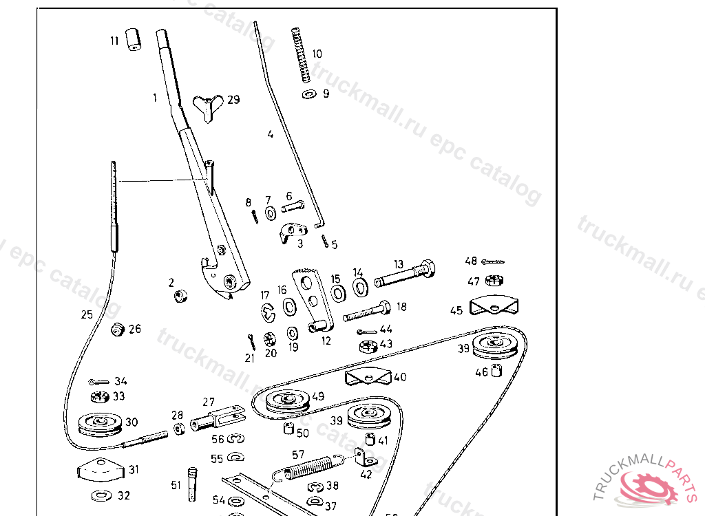SEILROLLE. CABLE PULLEY, COMPENSATING LEVER FOR REAR BRAKE CABLE FROM REAR AXLE 4511734 TO 5506349 FROM CHASSIS 4511693 TO 5506375