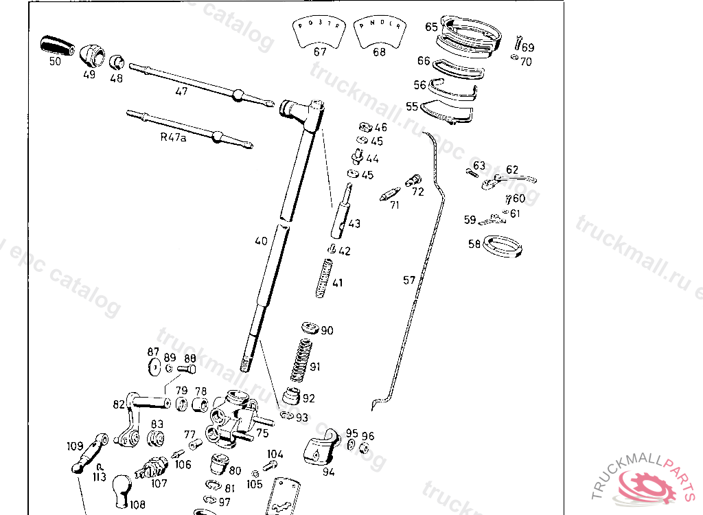 SCHALTROHR MIT ENDSTUCK LINKSLENKUNG FUR INNENLENKER MIT TRENNWAND (40 MM KURZERE LENKSPINDEL)