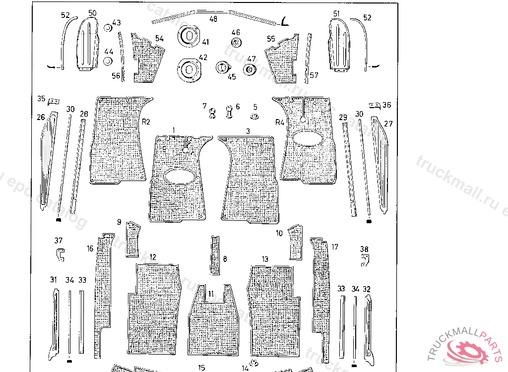 BODENBELAG FUR FAHRERBODEN RECHTS RECHTSLENKUNG BEI BESTELLG. FARBE UND AUFB.-NR.ANGEBEN