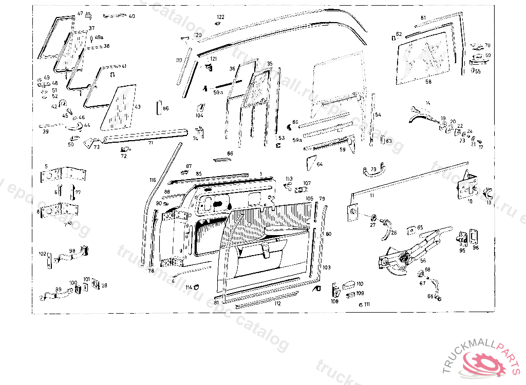 CRANK-OPERATED WINDOW, RIGHT AT DRIVER'S DOOR COMPLETE NO LONGER DELIVERED, ONLY AS SPARE PART FROM CHASSIS 8500838