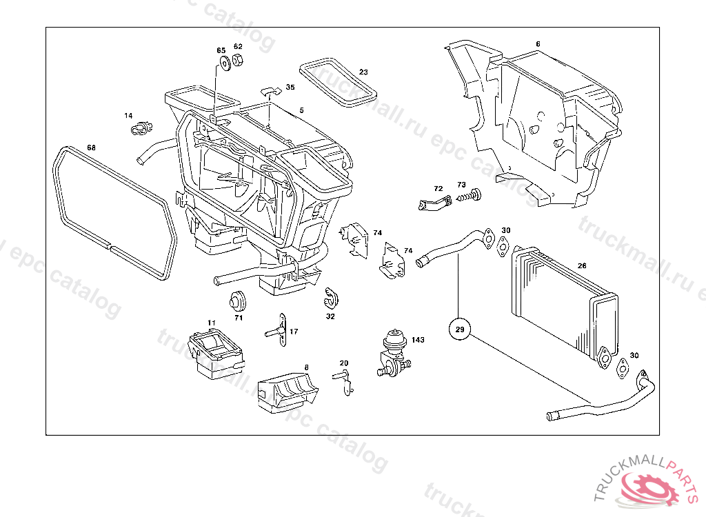HEATER CASE , FIRST EXHAUST STOCK OF OLD PARTS UP TO IDENT NO. 109699, Replaced By: A2018301062