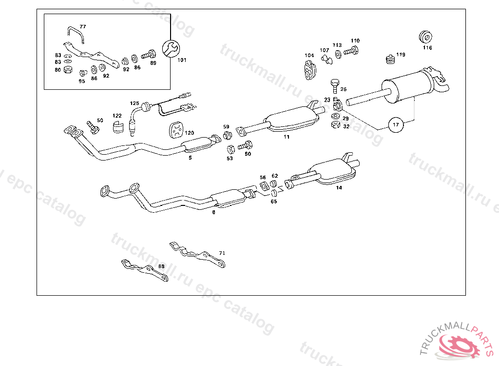 EXHAUST MUFFLER WITH PIPE CENTRAL, NOT FOR SWEDEN,SWITZERLAND,AND NORWAYA 569482 F 745592, Replaced By: A2014900801