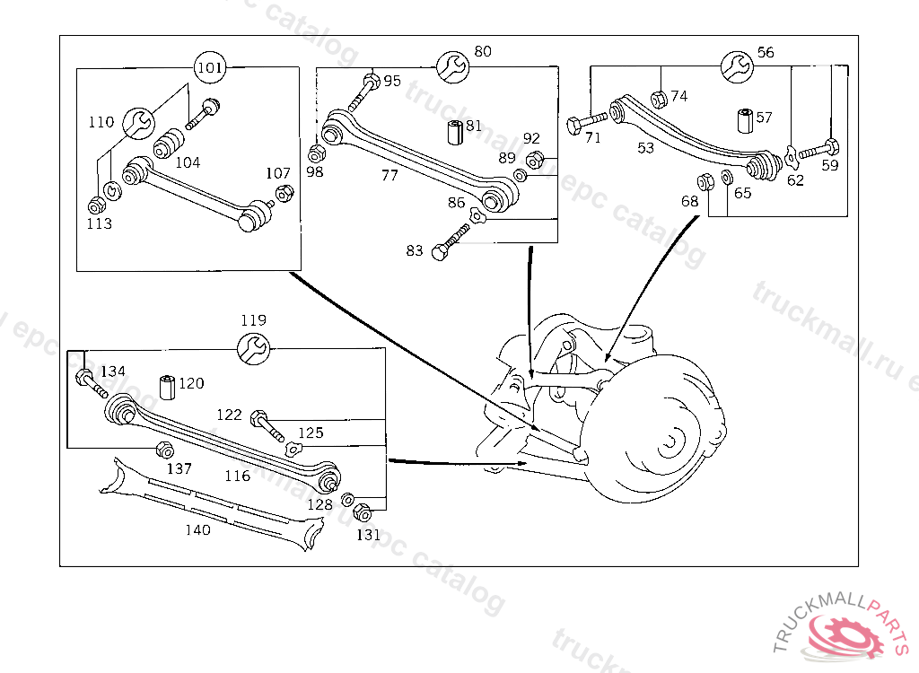 THRUST ARM , UP UNTIL BOLTED CONNECTIONS ON WHEEL CARRIER,THRUST ARM,CAMBER ARM AND RADIUS ROD WERE STANDARDIZED FROM M10 TO M12, Replaced By: A2103503806, +001A2103504506, +001A2103520043