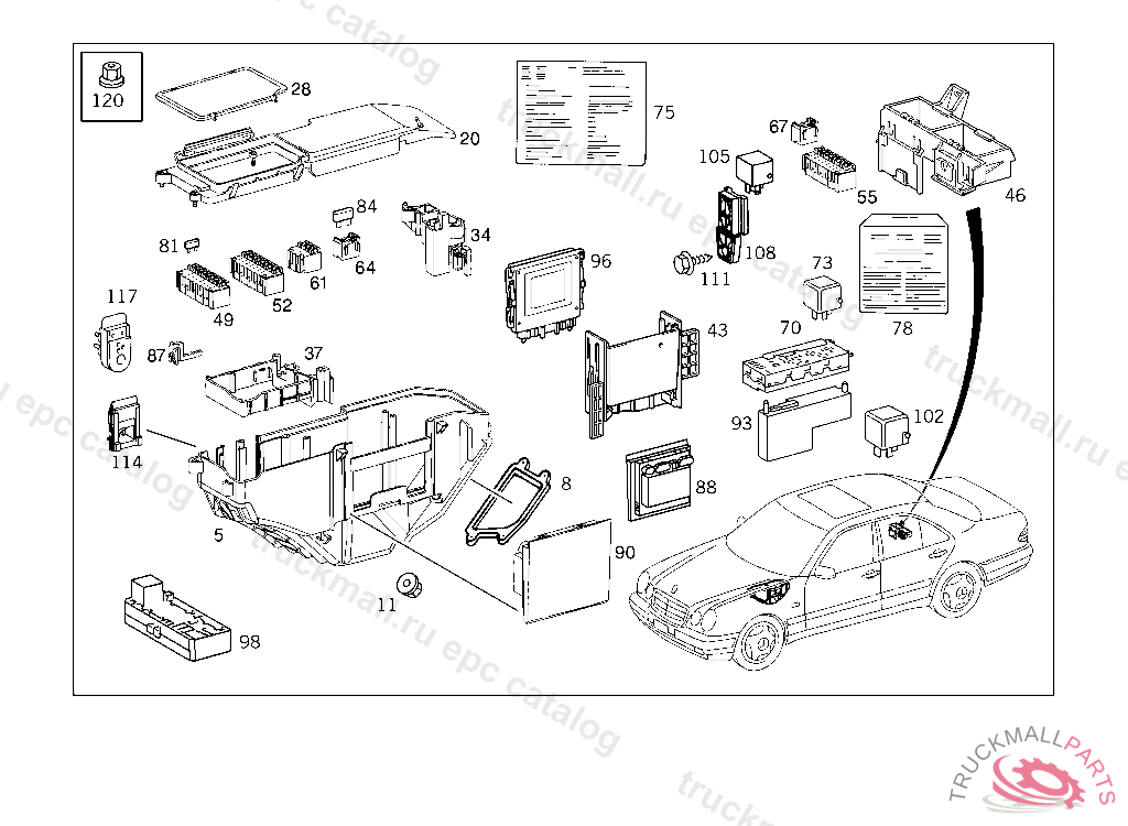 FUSE BOX CENTRAL ELECTRICAL SYSTEM SAM, A 519674 F 619721 EXCEPT CODE 807 ALSO INSTALLED IN VEHICLE TO A 519673, F 619720 WITH CODE 808