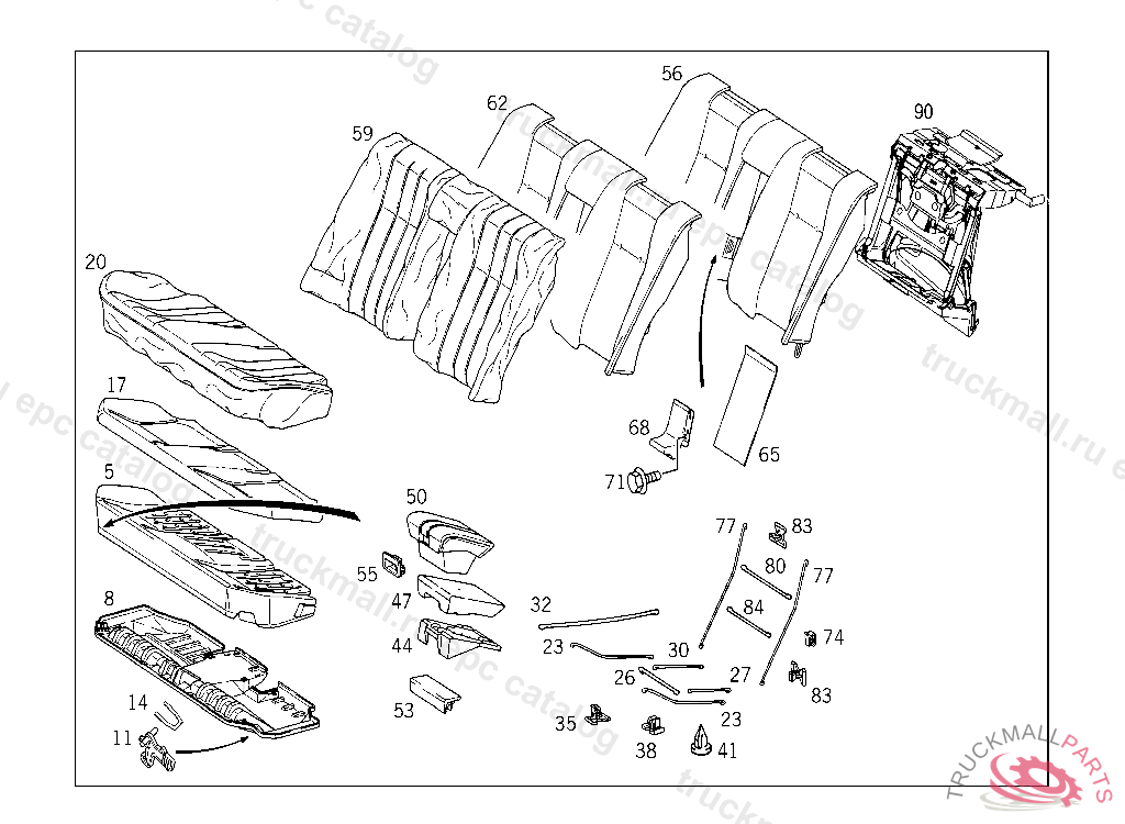 BACKREST MB-TEX,WITH SKI BAG CLASSIC / ELEGANCE, A 698507 X 012425 EXCEPT CODE 809 ALSO INSTALLED IN VEHICLE FROM A 698508, X 012426 WITH CODE 808NO.9B50I NO.5B29I NO.8G01I NO.8G06I .......I NO.7D03I I