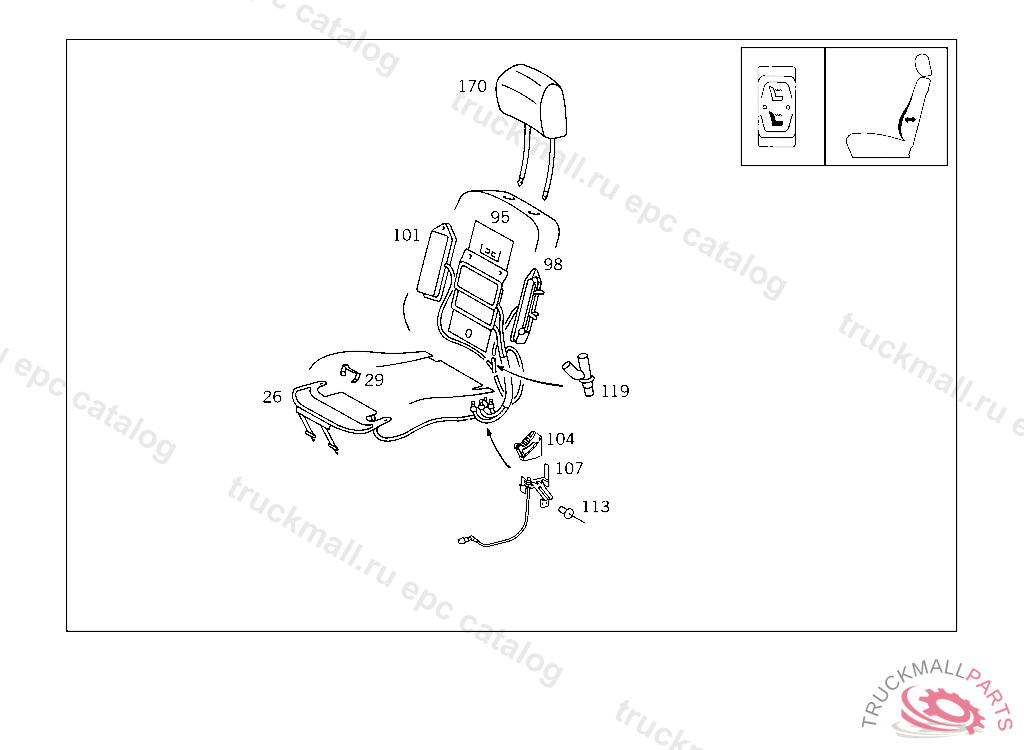 SEAT ADAPTER MULTI-CONTOUR BACKREST,RIGHT FRONT SEAT, F 619721 EXCEPT CODE 807 ALSO INSTALLED IN VEHICLE TO F 619720 WITH CODE 808