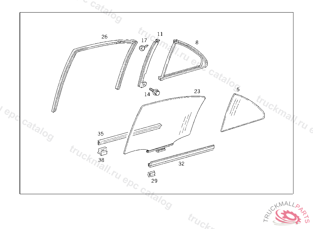 WINDOW STAYBAR RIGHT REAR DOOR,BETWEEN CRANK OPERATED WINDOW AND FIXED WINDOW