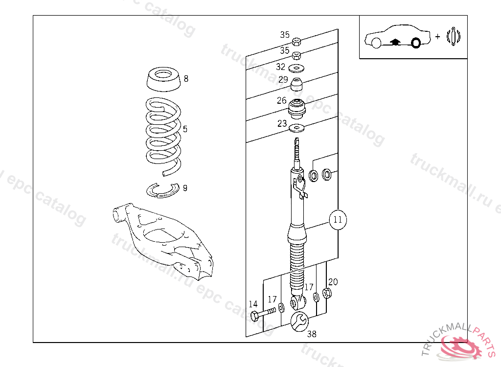 HYDROPN. SPRING LEG. HYDROPNEUMATIC SPRING LEG RANGE OF DELIVERY, ONLY REPLACEABLE BY PAIRS, Replaced By: A2103200713, +002A2029900099