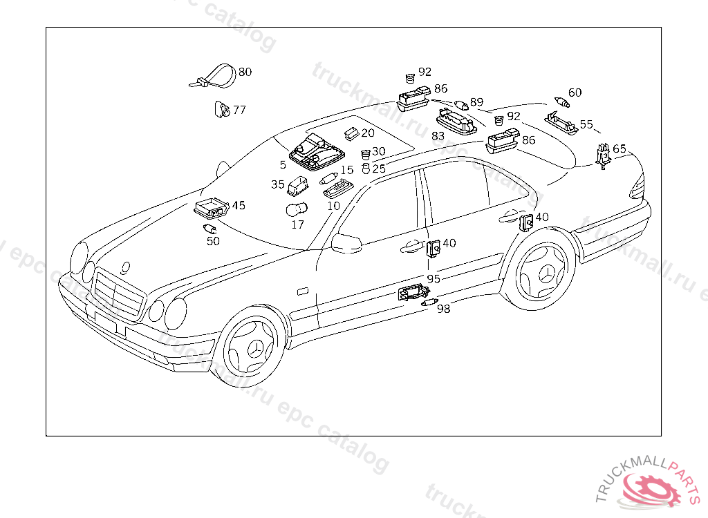 INTERIOR LAMP REAR DOME LAMP, WITH PARKTRONIC SYSTEM, A 698508 X 012426 EXEPT FOR VEHICULES WITH CODE 808 ALSO INSTALLED IN VEHICLE TO A 698507, X 012425 WITH CODE 809
