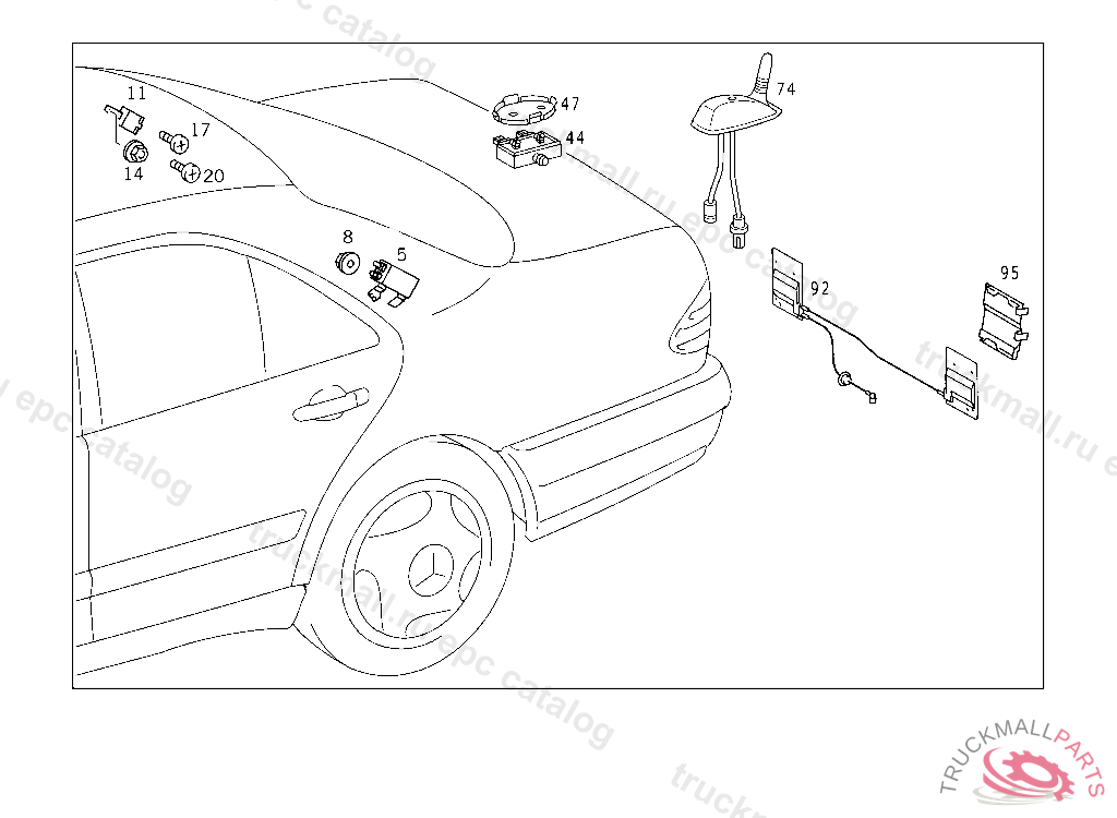 AMPLIFIER C-PILLAR, A 698507 X 012425 EXCEPT CODE 809 ALSO INSTALLED IN VEHICLE FROM A 698508, X 012426 WITH CODE 808