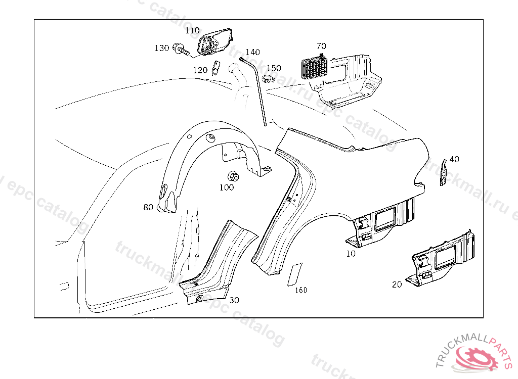 REAR FENDER WITH HOLE FOR ANTENNA,LEFT, ORDER ADDITIONALLY: 1 X 210 682 07 30 ISULATION LEFT REWORK FOR VEHICLES UP TO IDENT.NO.: 99/1 CABLE/LINES WHICH ARE ROUTED OVER THE RIVETS IN THE REAR FENDER,RIGHT AND LEFT, MUST BE WRAPPED WITH FELT AT EACH RIVET FELT PART NO.:A 000 983 89 10aJ 99/1 REWORK FOR VEHICLES FROM IDENT.NO.: 99/1 DRILL OFF BRACKET FOR BUMPER MOUNTING DRILL OUT HOLES FOR BUMPER MOUNTING RIVET