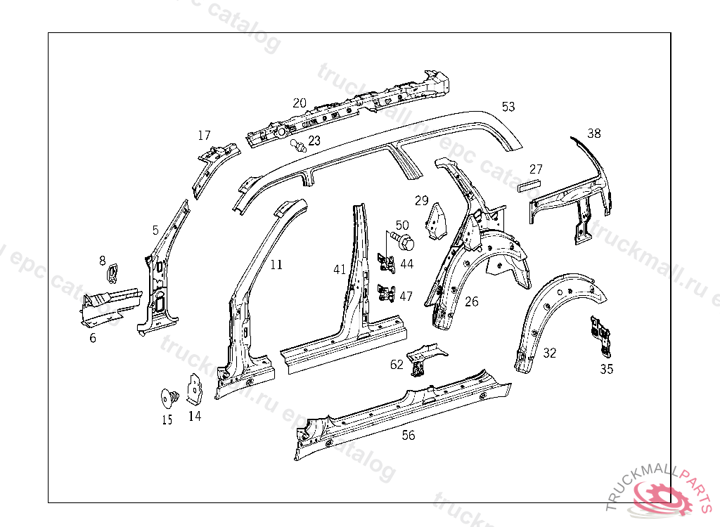 WHEELHOUSE , FIRST EXHAUST STOCK OF OLD PARTS UP TO IDENT NO.A 779798 / X 016162, Replaced By: A2106371076