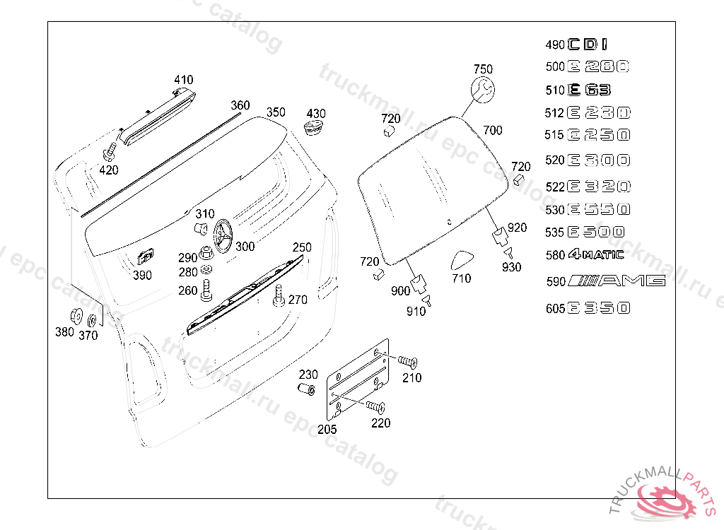 TYPE DESIGNATION AT REAR PANEL DOOR E350, A 57522720111222 TO BE ADAPTED DURING ASSEMBLY