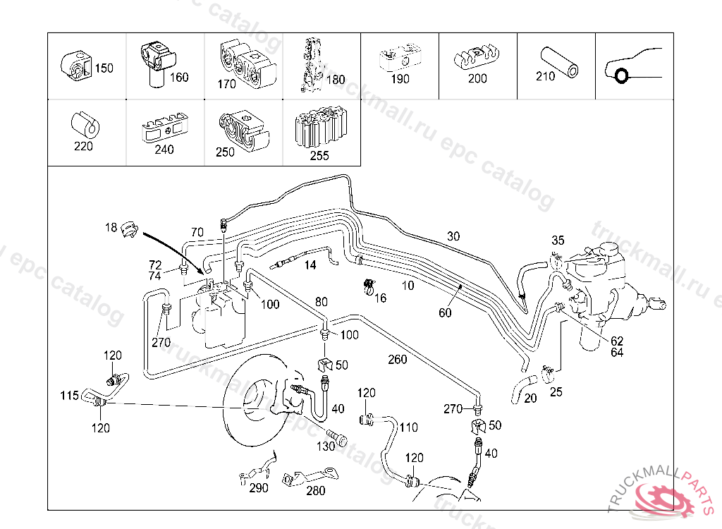 LINE HOLDER FASTENING, RIGHT FRONT WHEEL BRAKELINEAT FIREWALL, Replaced By: A0029951577