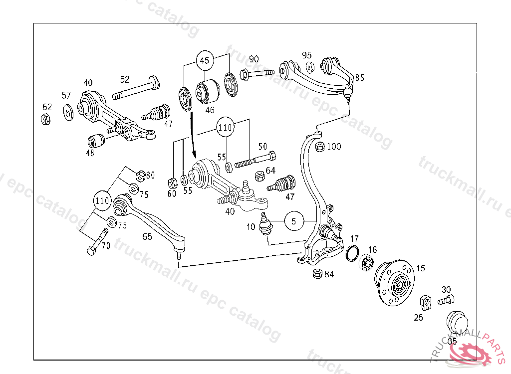 SPRING CONTROL ARM BOTTOM RIGHT, FIRST EXHAUST STOCK OF OLD PARTS UP TO IDENT NO. A 32275920020911, Replaced By: A2203309707
