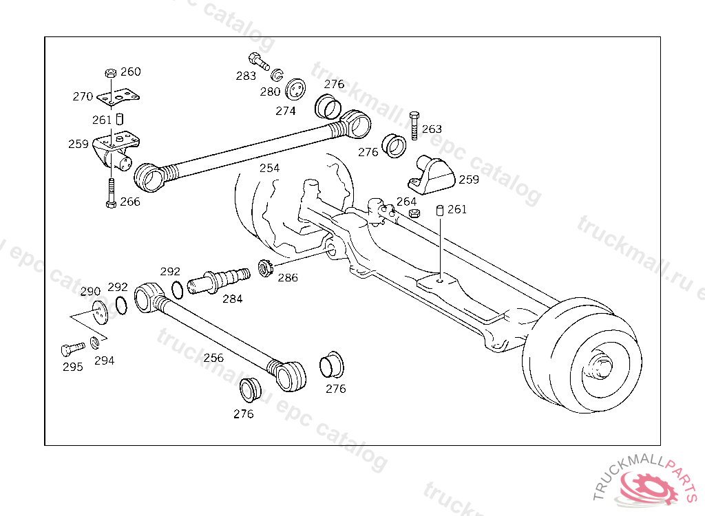 SCREW LONGITUDINAL CONTROL ARM TO BEARING BODY AND TO REAR AXLE