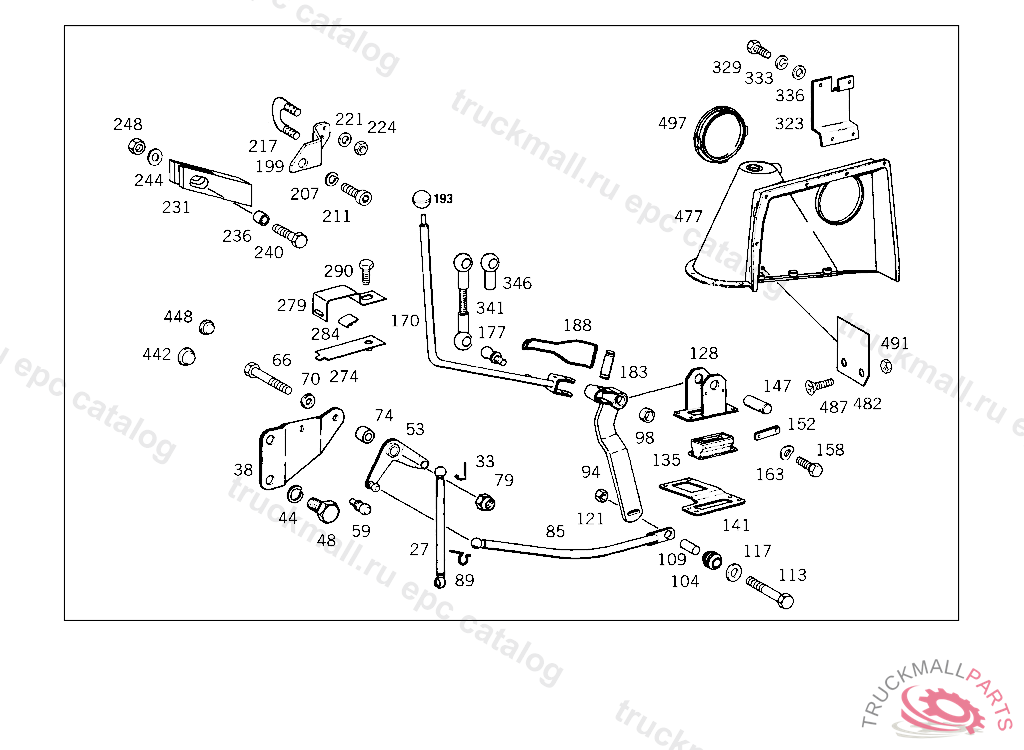 YOKE GEARSHIFT MECHANISM, ON TRUCKS UP TO CHASSIS 156152,ON BUSES UP TO CHASSIS 020033