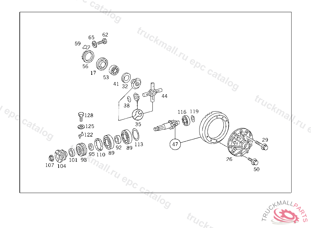 DIFFERENTIAL GEAR LESS RING GEAR AND PINION, 309.000-026 FROM CHASSIS 005892,309.070-091 FROM CHASSIS 001200,309.100-126 FROM CHASSIS 093945