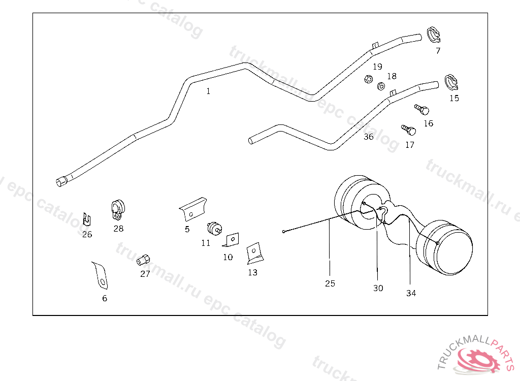 LINE FROM DISTRIBUTOR TO BRAKE HOSE ON REAR AXLE 415 MM,4 478330