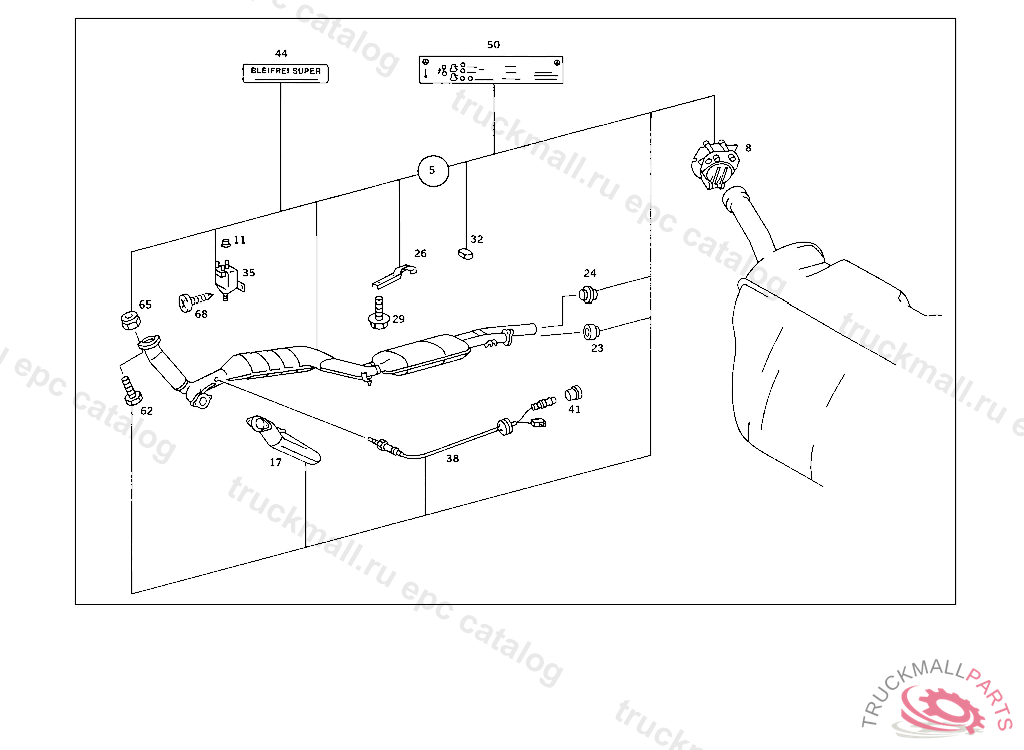 EXHAUST PIPE RANGE OF DELIVERY FOR SUBSEQT. INSTALLATION OF CATALYST WITH OXYGEN SENSOR, ORDER ADDITIONALLY: RANGE OF DELIVERY OF 116 140 10 85