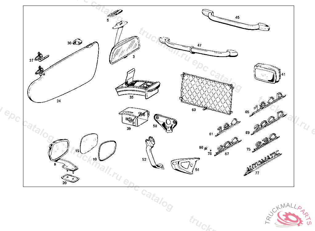 MIRROR HEAD LEFT MIRROR HEAD, UP TO CHASSIS: 110.010 189333 110.110 352415 111.010 106833 111.021,023 088725 112.021,024 009795