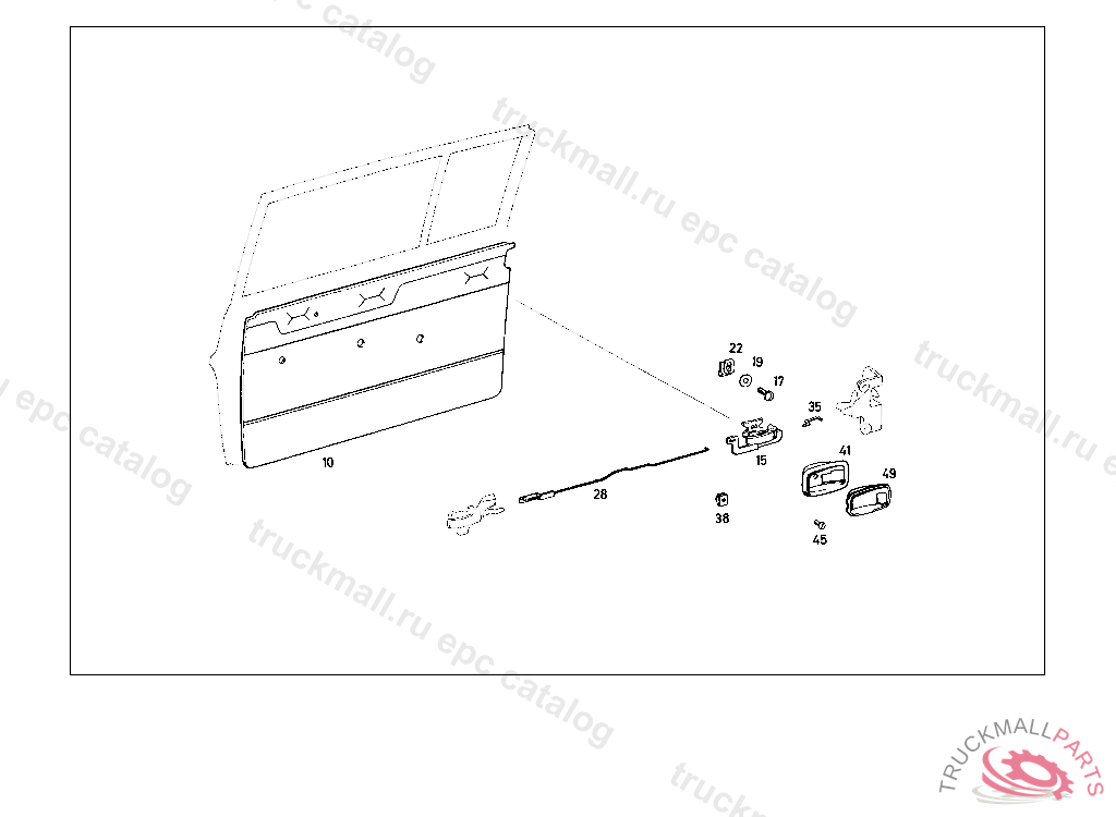 PANELLING LEFT REAR DOOR, UP TO CHASSIS: 114.017 038672 115.112 089093 STATE COLOR NUMBER WHEN ORDERING