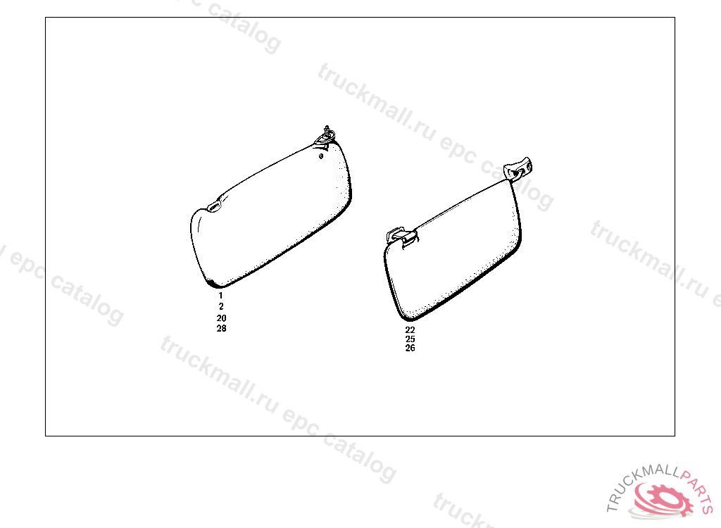 SUN VISOR RIGHT, FROM CHASSIS 109.016 000001 110.010 189334 110.011 032036 110.110 352416 111.010 106834 STATE COLOR NUMBER WHEN ORDERING