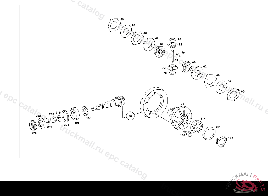 SPACER WASHER AS REQUIRED 1.0 MM, REAR AXLE HOUSING WITH DIFFERENTIAL,LESS SIDE BEARING CABS 003 103239 007 087551 086 007106 093 008992 102,103 240183 105 231729 183 015395 190 021957 193 002093 200 027295 280 000777 283 003632