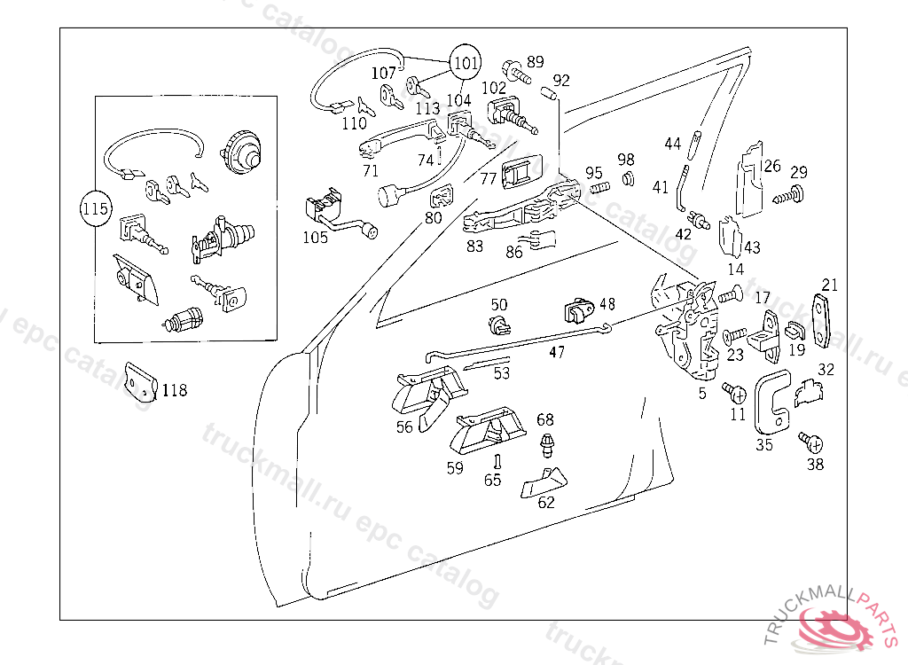 OUTFIT(LOCK,KEY,HANDLE) USED WITHOUT CENTRAL LOCKING MECHANISM, WHEN ORDERING, PLEASE DO NOT FAIL TO FILL OUT THE FORM COMPLETELY, AND TO PUT IT ON FILE. "ORDER FOR SPARE KEYS/LOCKING PARTS" IN CASE OF CRIMINAL INVESTIGATIONS, YOU SHOULD AT ANY TIME BE ABLE TO GIVE DOCUMENTARY EVIDENCE. THEFT-RELEVANT PART