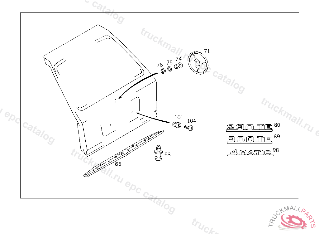 TYPE DESIGNATION ON REAR PANEL DOOR,TO BE GLUED "300TE", UP TO END OF MODEL YEAR 93