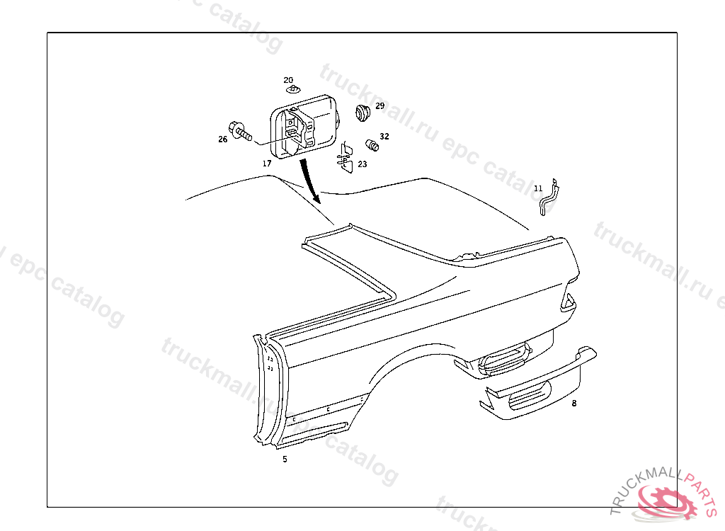 REAR FENDER , A 354452, Replaced By: A1266300821, +001A1267500706, +001A0008009075, +001A1248000179