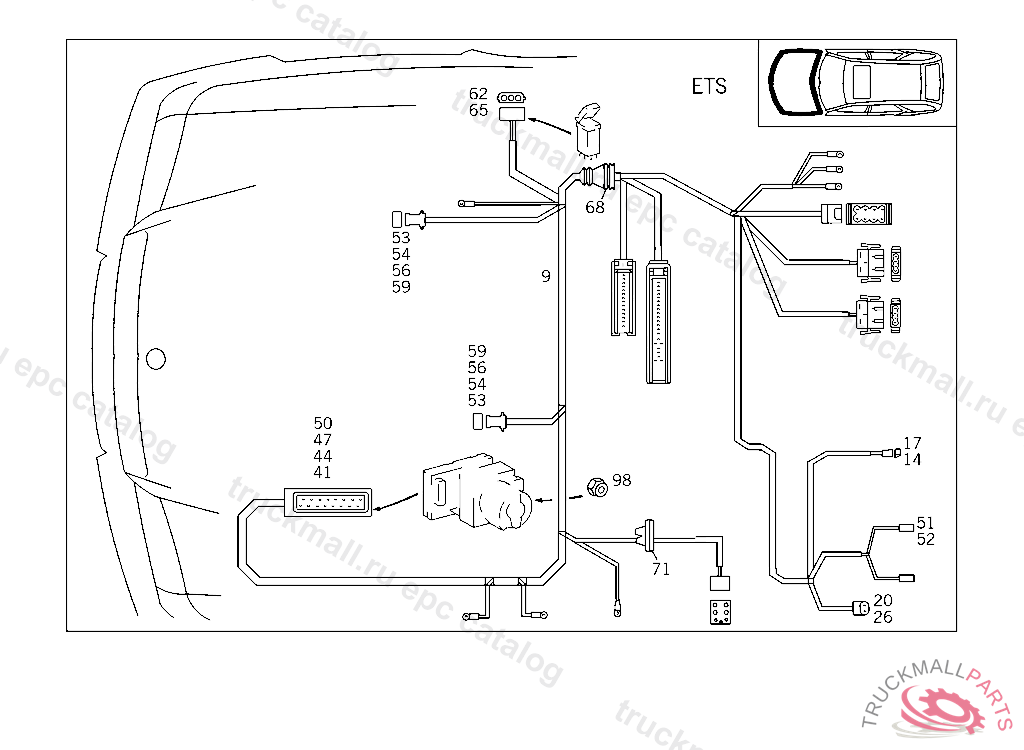 CABLE HARNESS ELECTRONIC TRACTION SYSTEM, A 344661 F 331441 EXCEPT CODE 805 ALSO INSTALLED IN VEHICLE TO A 344660, F 331440 WITH CODE 806 A 436535 F 483847 EXCEPT CODE 807 ALSO INSTALLED IN VEHICLE FROM A 436536, F 483848 WITH CODE 806