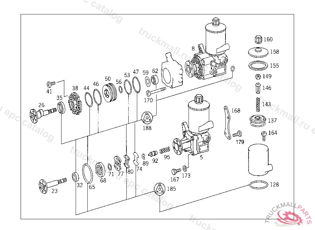 HYDRAULIC PUMP USED WITHOUT SELF-LEVELLING DEVICE / AUTOMATIC LOCKING DIFFERENTIAL (ASD) ZF, A 344660 F 331440 EXCEPT CODE 806 ALSO INSTALLED IN VEHICLE FROM A 344661, F 331441 WITH CODE 805 PART IS ONLY OR ALSO SUPPLIED AS RECONDITIONED PART
