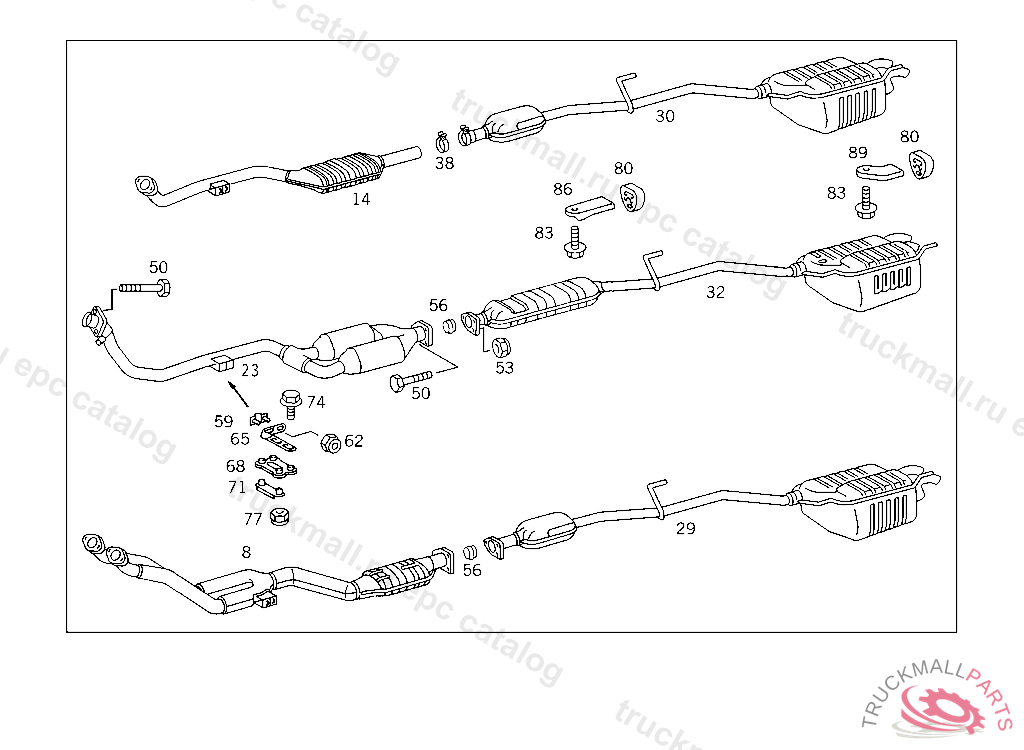 EXHAUST PIPE CENTRAL AND REAR, F 619720 EXCEPT CODE 808 ALSO INSTALLED IN VEHICLE FROM F 619721 WITH CODE 807