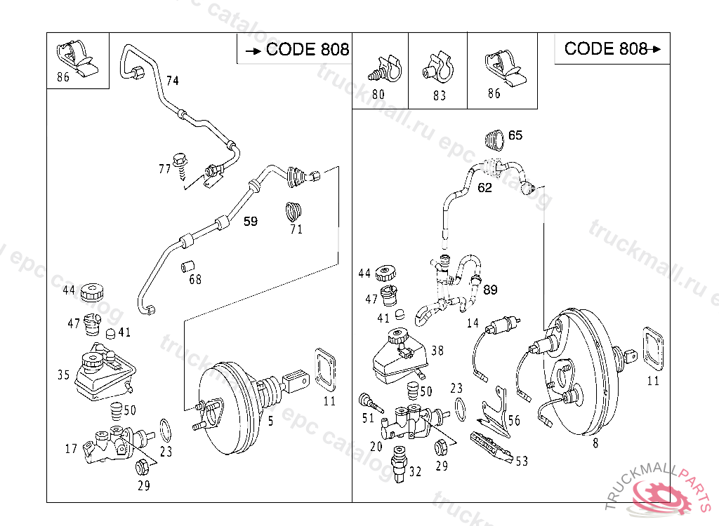 BRAKE BOOSTER ASSEMBLY , A 519674 F 619721 EXCEPT CODE 807 ALSO INSTALLED IN VEHICLE TO A 519673, F 619720 WITH CODE 808 A 809594 F 894083 EXEPT ON VEHICULES WITH CODE 800 ALSO INSTALLED IN VEHICLE FROM A 809595, F 894084 WITH CODE 809