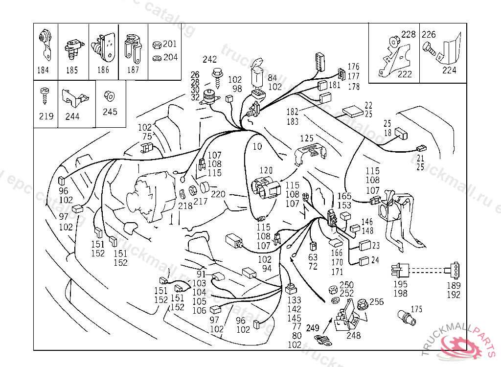 CABLE HARNESS ENGINE CABLE HARNESS,BODY MOUNTED, F 619720 EXCEPT CODE 808 ALSO INSTALLED IN VEHICLE FROM F 619721 WITH CODE 807