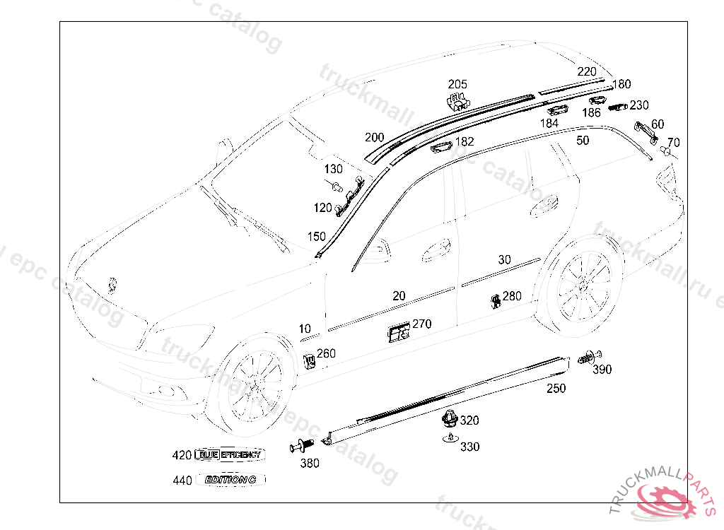 CLIP WATER REPELLENT AT LEFT A-PILLAR, FIRST EXHAUST STOCK OF OLD PARTS UP TO IDENT NO. V 00003220130619, Replaced By: A0039919470