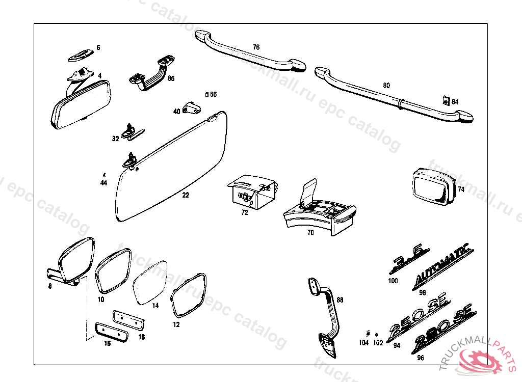 SUN VISOR LESS MIRROR, LEFT, FROM CHASSIS 088725 ALSO INSTALLED ON 088472,088717 STATE COLOR NUMBER WHEN ORDERING