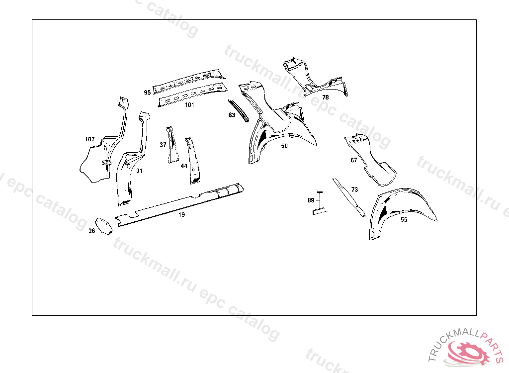 RUBBER SECTION BETWEEN REAR FENDER AND PARTITION PANEL 410 MM, ORDER BY THE METER