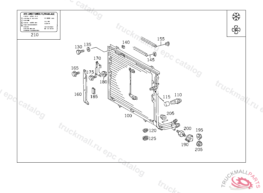 CONDENSER , ONLY WHEN ORIGINAL MERCEDES BENZ RETROFIT AIR CONDITIONING UNIT IS INSTALLED A 394035 J 036478 EXCEPT CODE 808 ALSO INSTALLED IN VEHICLE FROM A 394036 WITH CODE 807