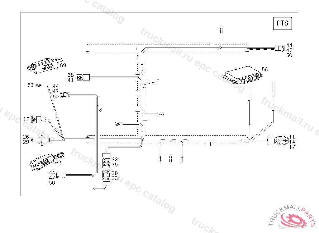 CABLE HARNESS PARKTRONIC, FRAME FLOOR SYSTEM, A 394036 X 004166 EXCEPT CODE 807 ALSO INSTALLED IN VEHICLE TO A 394035 / X 004165 WITH CODE 808 A 698507 X 012425 EXCEPT CODE 809 ALSO INSTALLED IN VEHICLE FROM A 698508, X 012426 WITH CODE 808